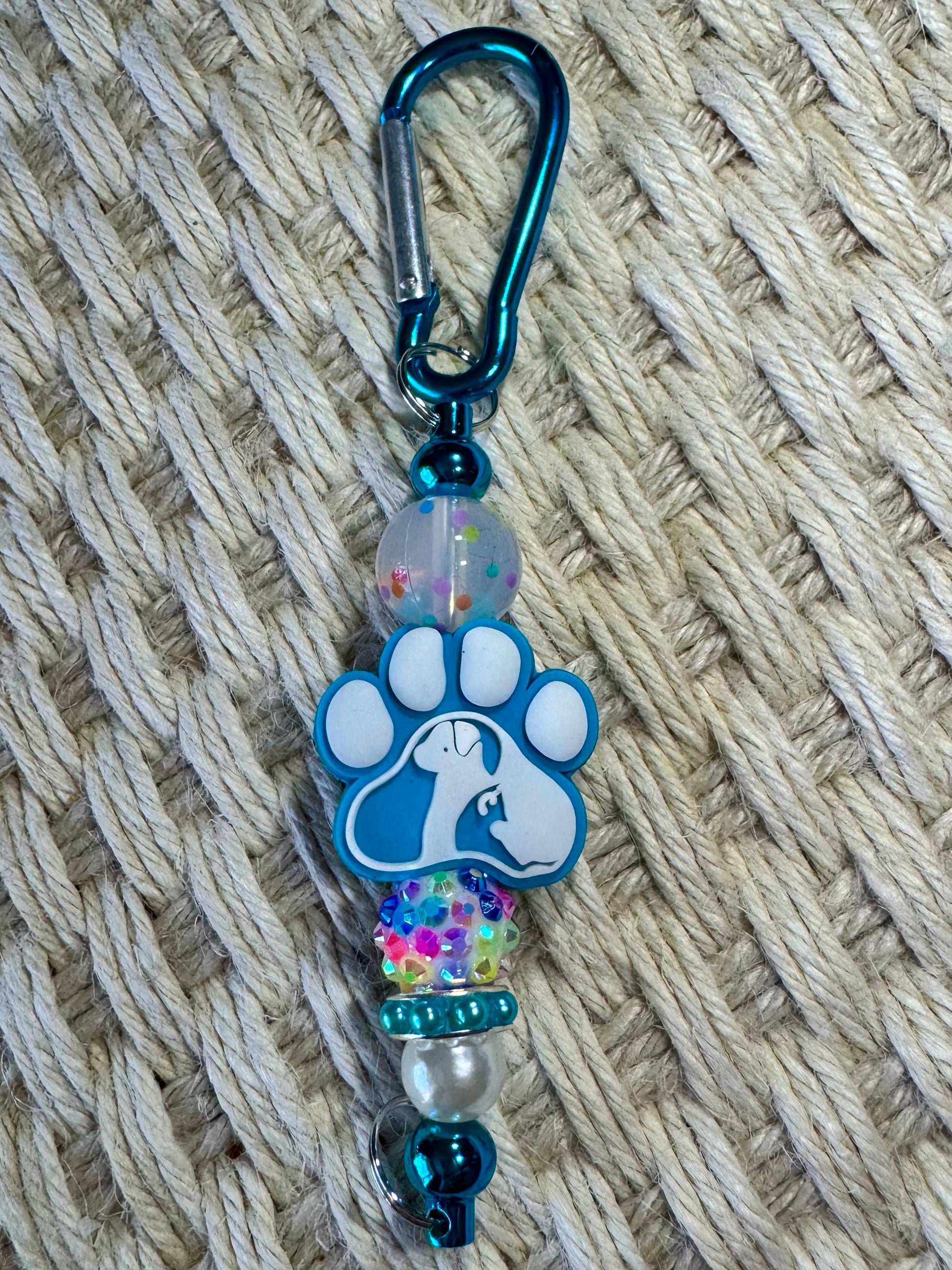 Each colored carabiner comes with a matching pet parent bead and cute little accents. So perfect for your purse or keys!